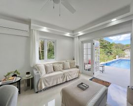 Villatre is a three bedroom single level villa located in the gated community of Mullins Bay. This beautifully decorated villa rents as a two bedroom as the owners bedroom is locked off. Villatre has a private pool and just across the road from Mullins Beach.
